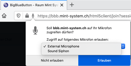 BigBlueButton fragt einmalig nach dem Mikrofon-Zugriff.
